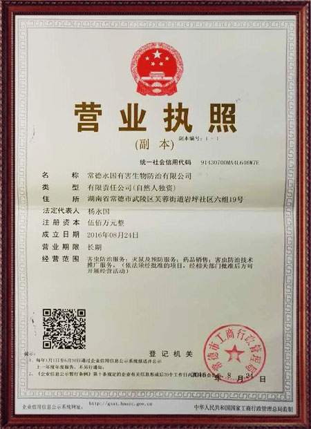 常德永國有害生物防治有限公司以常德市武陵區(qū)永科清潔服務(wù)中心來服務(wù),2016年更名為常德永國生物防治有限公司。做這塊已有十多年豐富的理論支持和實經(jīng)驗。技術(shù)專業(yè)、器械先進(jìn)。旨在為賓館、酒店、超市、餐廳、工礦、機(jī)關(guān)團(tuán)體、學(xué)校、醫(yī)院及家庭提供快捷、貼心的服務(wù),根據(jù)客戶的實際情況、地理位置,解決鼠、蟲害問題。我們承諾:服務(wù)滿意后付款,只要一個電話解決您的煩惱問題。